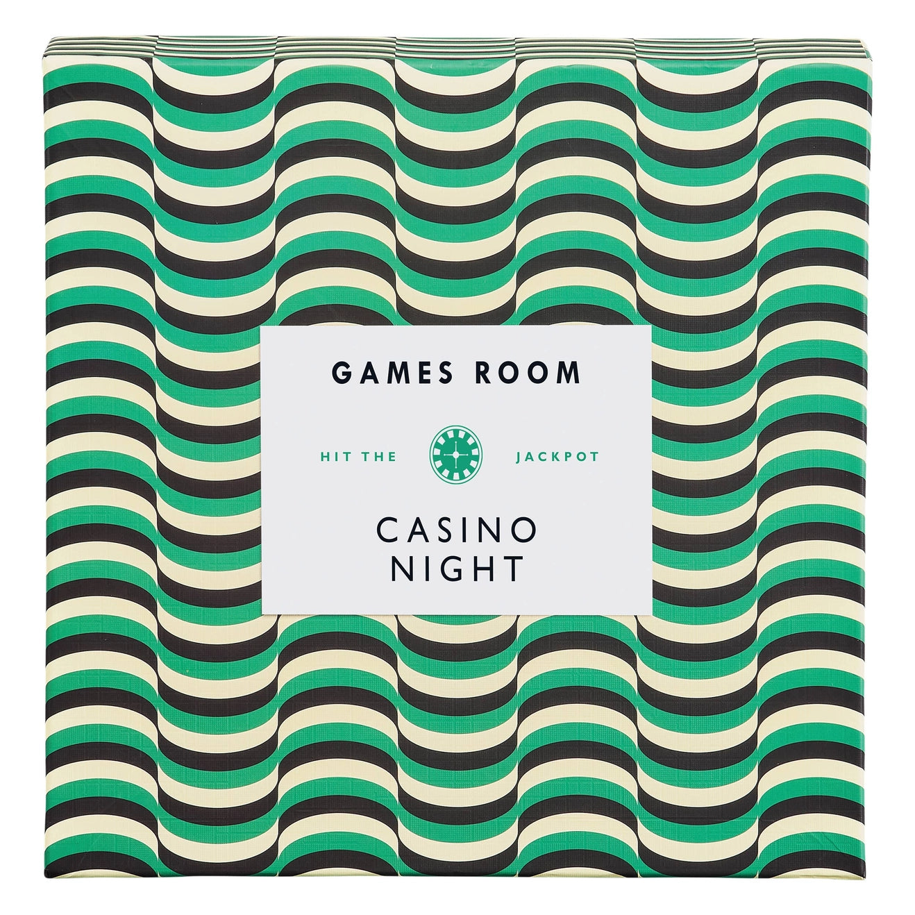 Have a high rollers night in with this Casino Night from Games Room! Test out your odds with everything you need to play classic Casino games such as Pontoon, Texas Hold-em Poker and Roulette. Includes a roulette wheel, 200 poker chips, two packs of playing cards, dealer chip, games board, 2 roulette ball and 1 croupier stick. Perfect for a group night in with friends or family, roll the dice and see how your luck turns out! Comes packaged in a geometric print box.